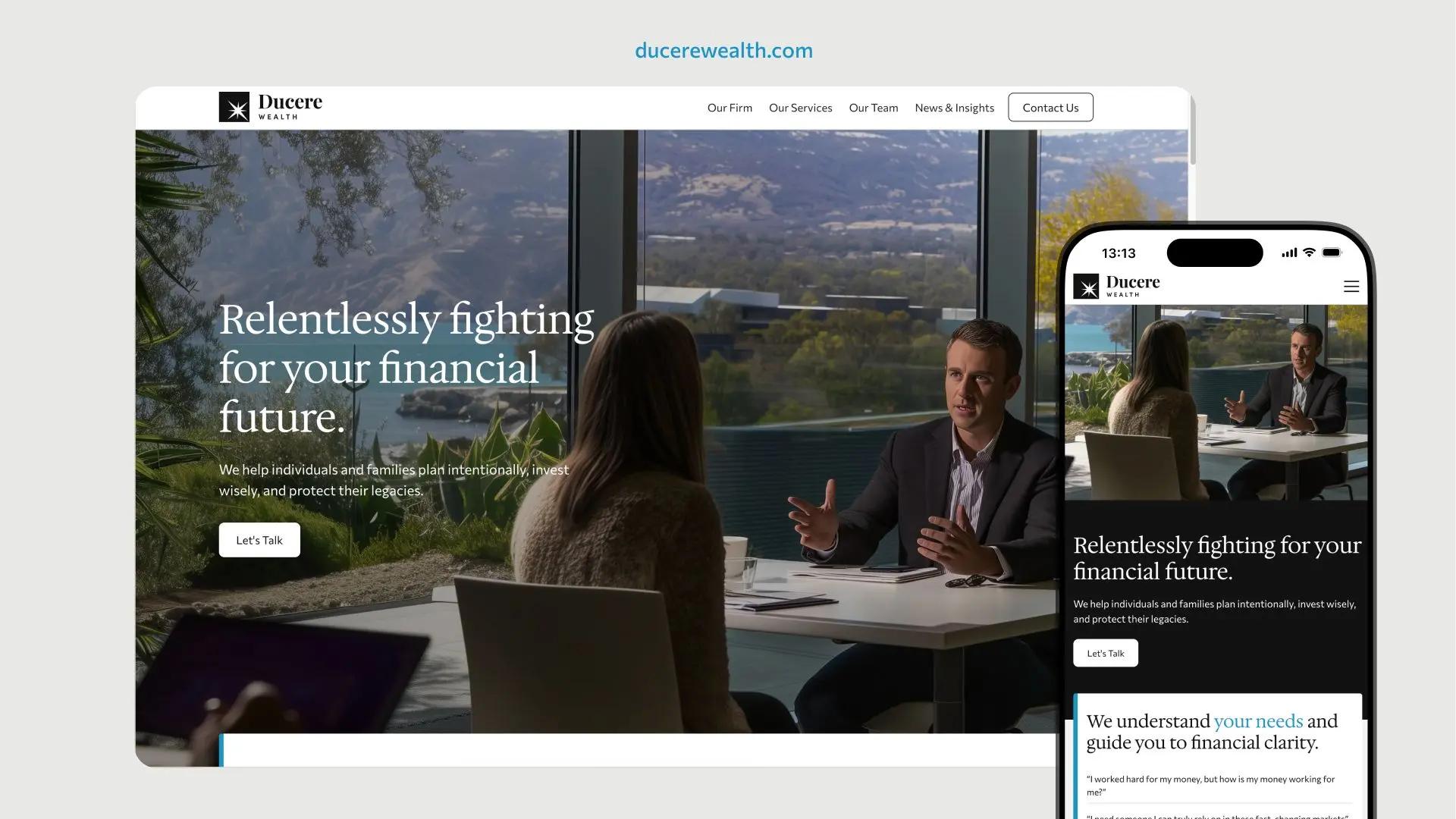 The result is a brand and digital presence that communicates partnership, clarity, and confidence, positioning Ducere not simply as a wealth manager, but as a trusted guide for long-term prosperity.