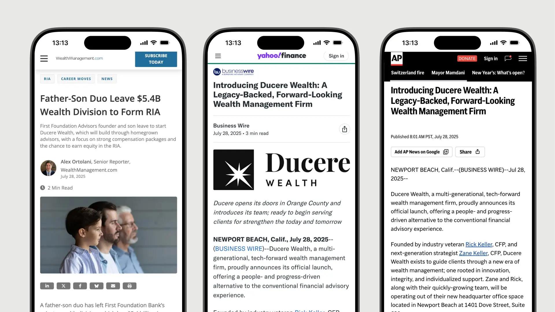 With nearly $1B in assets under management and growing, the new identity elevates Ducere Wealth from a generic financial services brand to a distinct, premium offering. The brand now resonates strongly with high-net-worth audiences in Newport Beach and Las Vegas, while clearly standing out in a crowded and visually undifferentiated market.