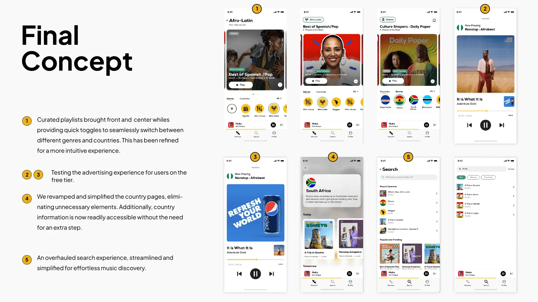 The strategic objective was to design a discovery experience that celebrates the richness of African music while remaining simple and approachable for both new listeners and longtime fans.